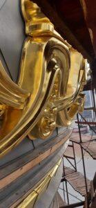 Особлива частина проєкту — позолота куполів і декоративних елементів. Використано лише натуральне сухозлітне (сусальне) золото 960 проби, що забезпечує довговічність покриття та яскравий блиск на десятки років.