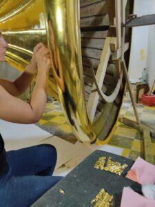 Ручне укладання сусальних листів на лак мордан