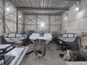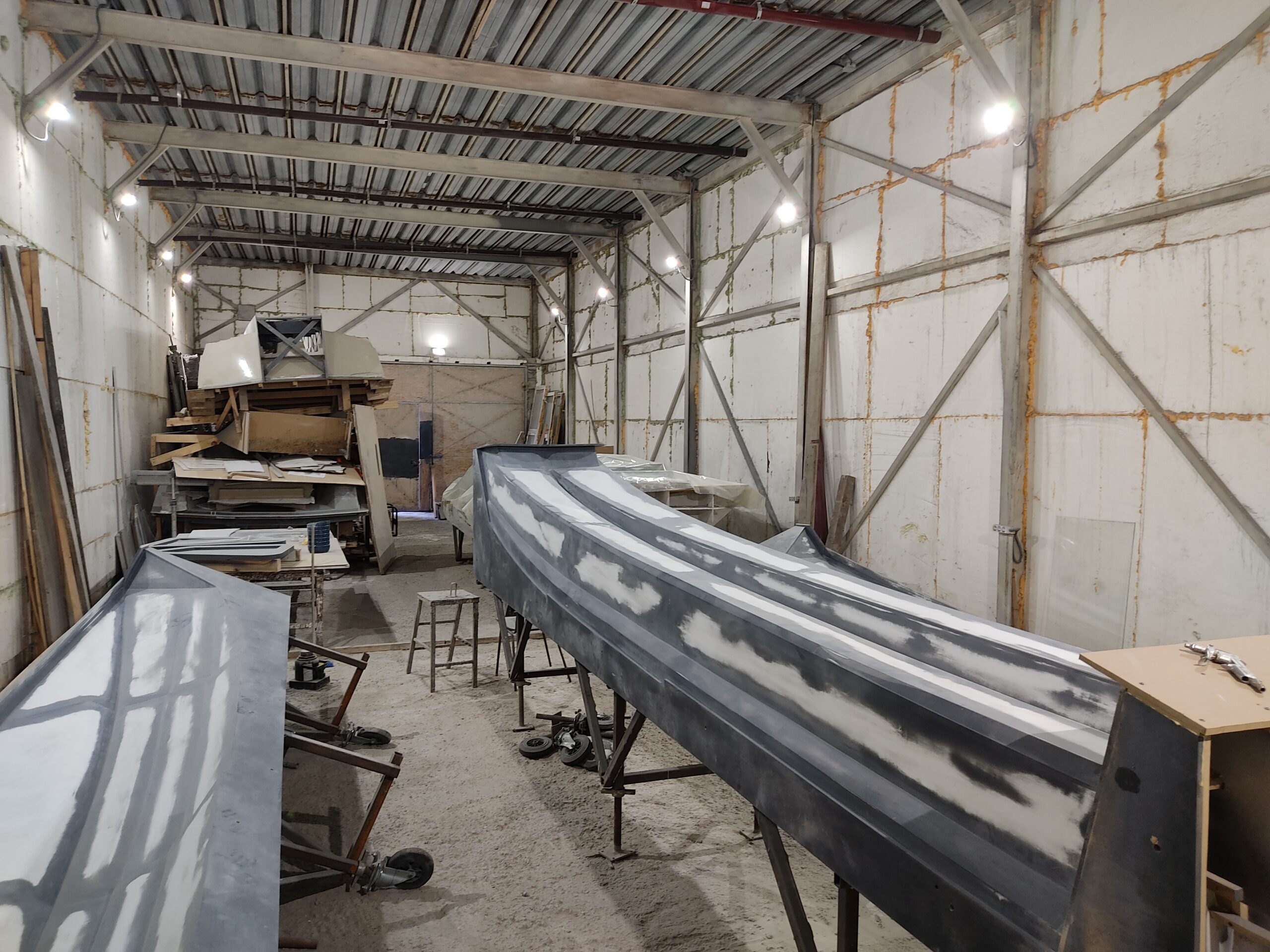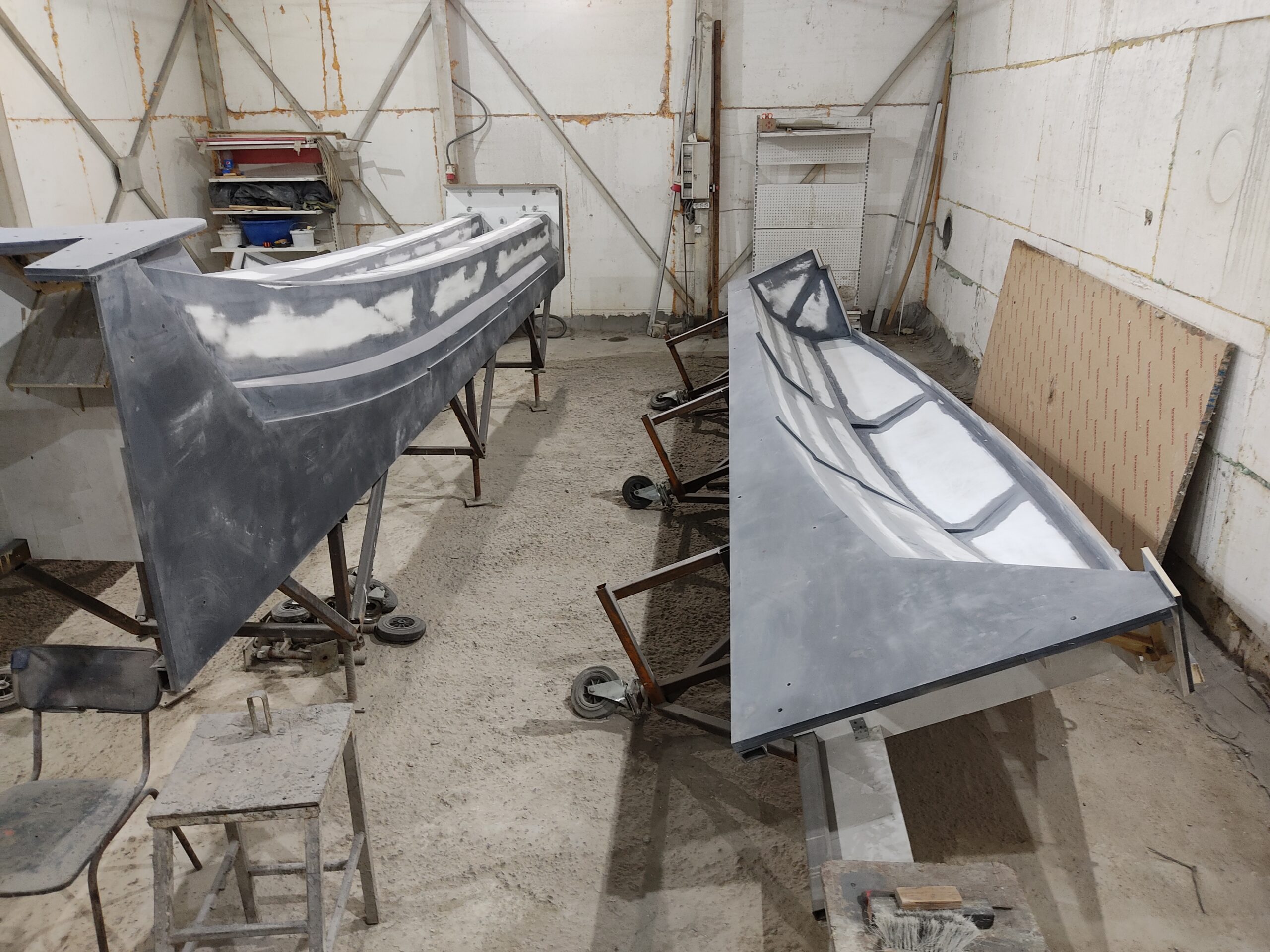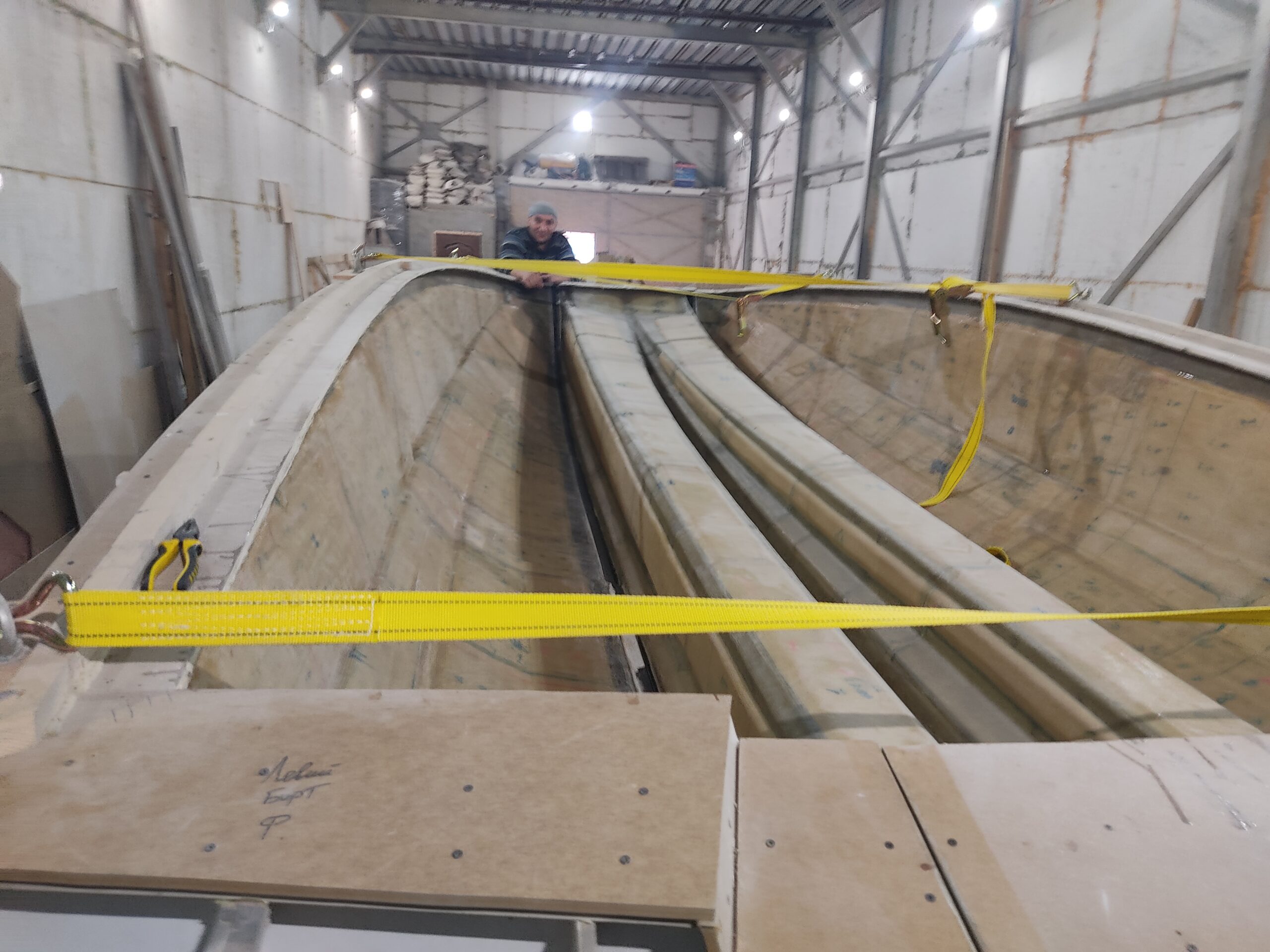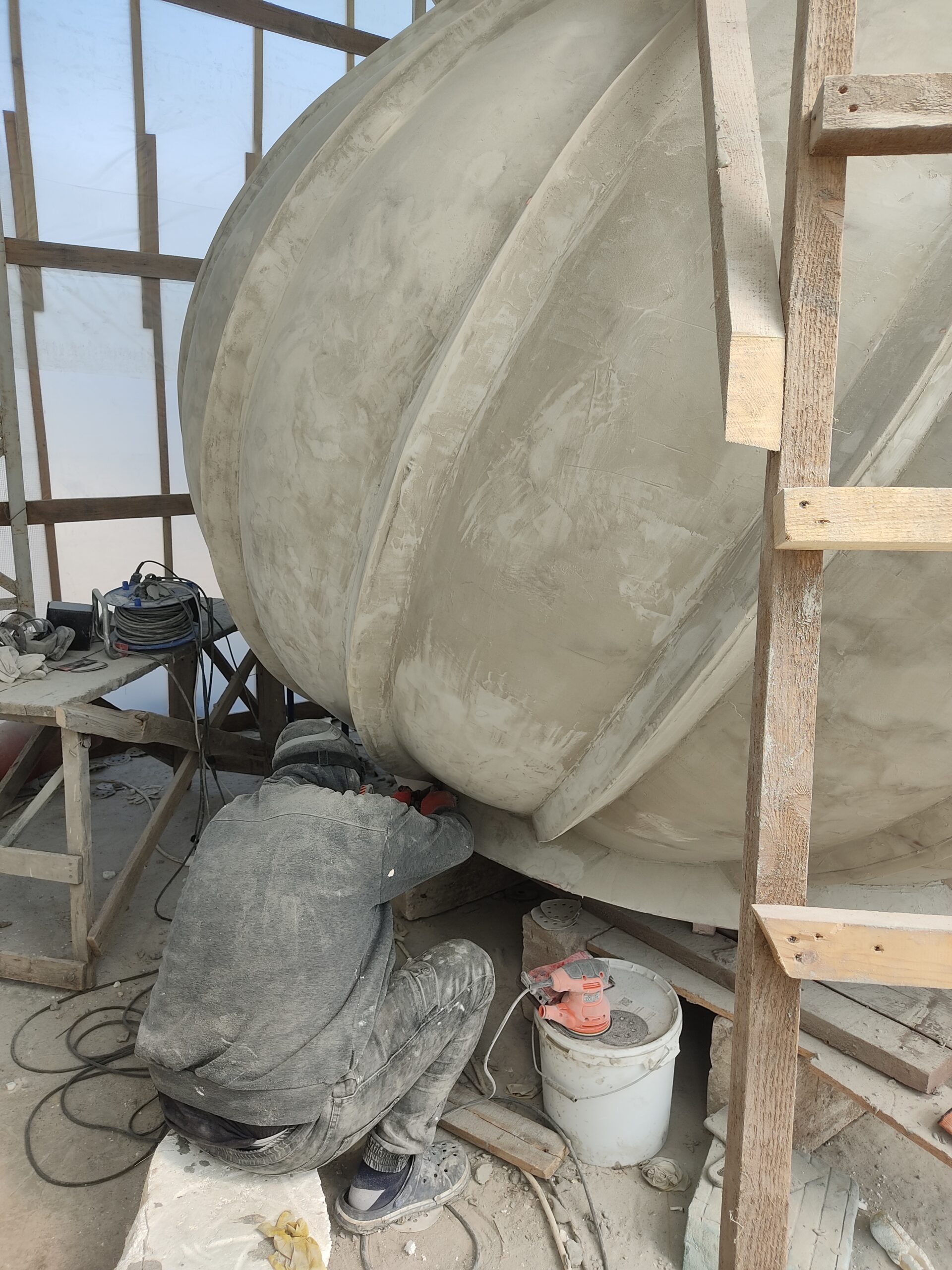 Нарощування товщини: Після гелькоуту накладаються шари скломату та смоли. Для великих форм створюється додатковий металевий або дерев’яний каркас, щоб матриця не деформувалася під час роботи.