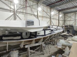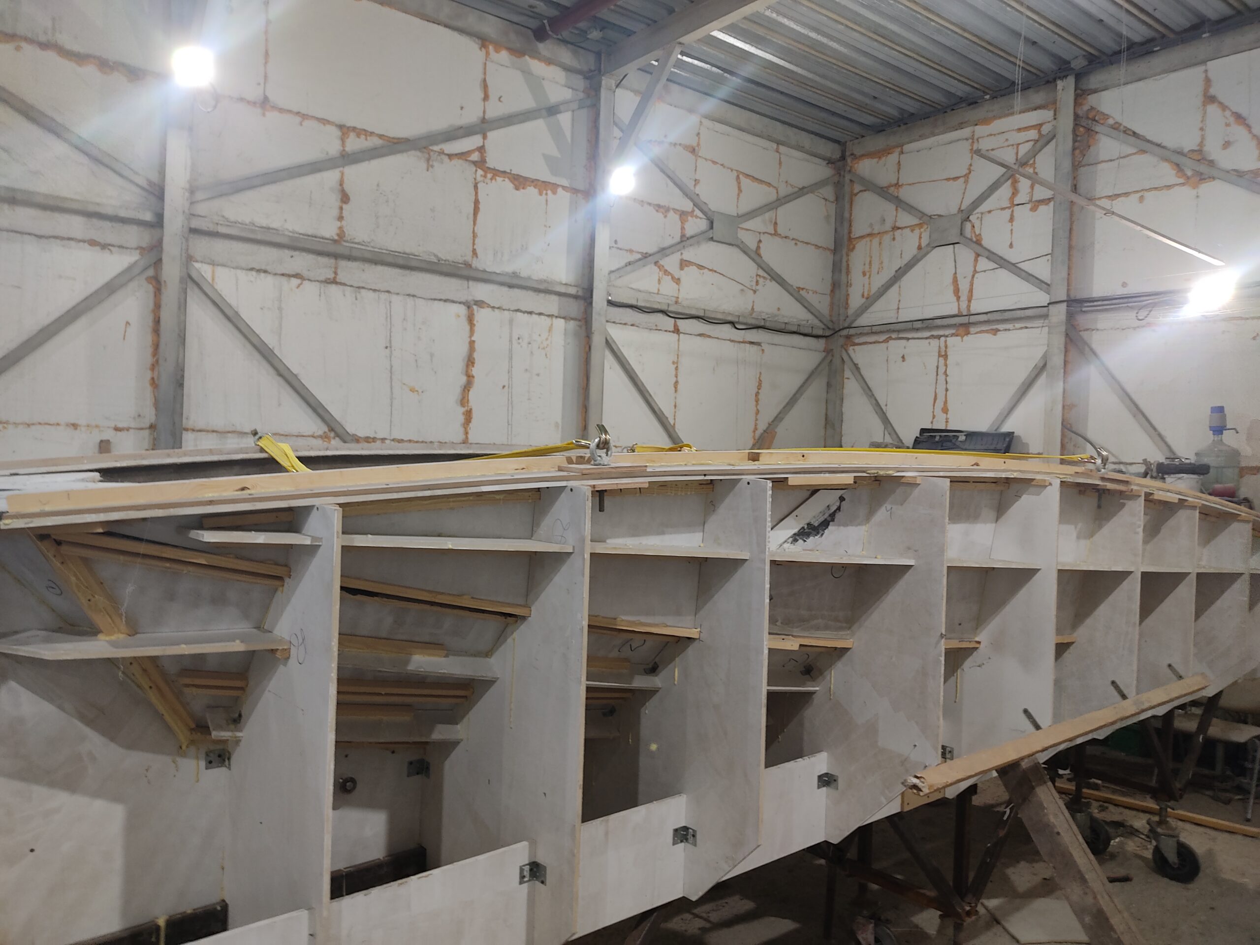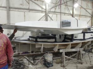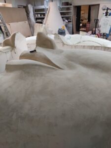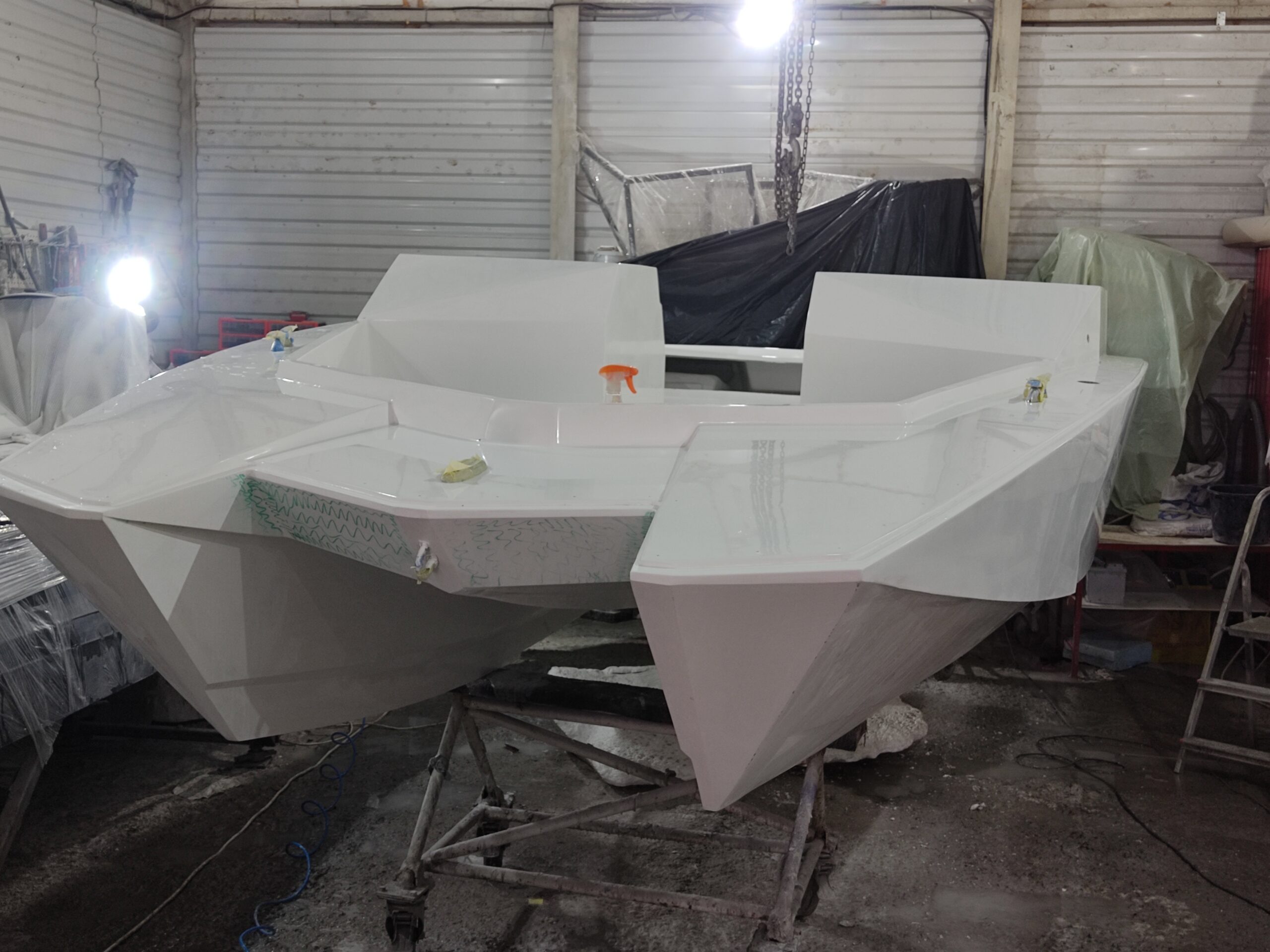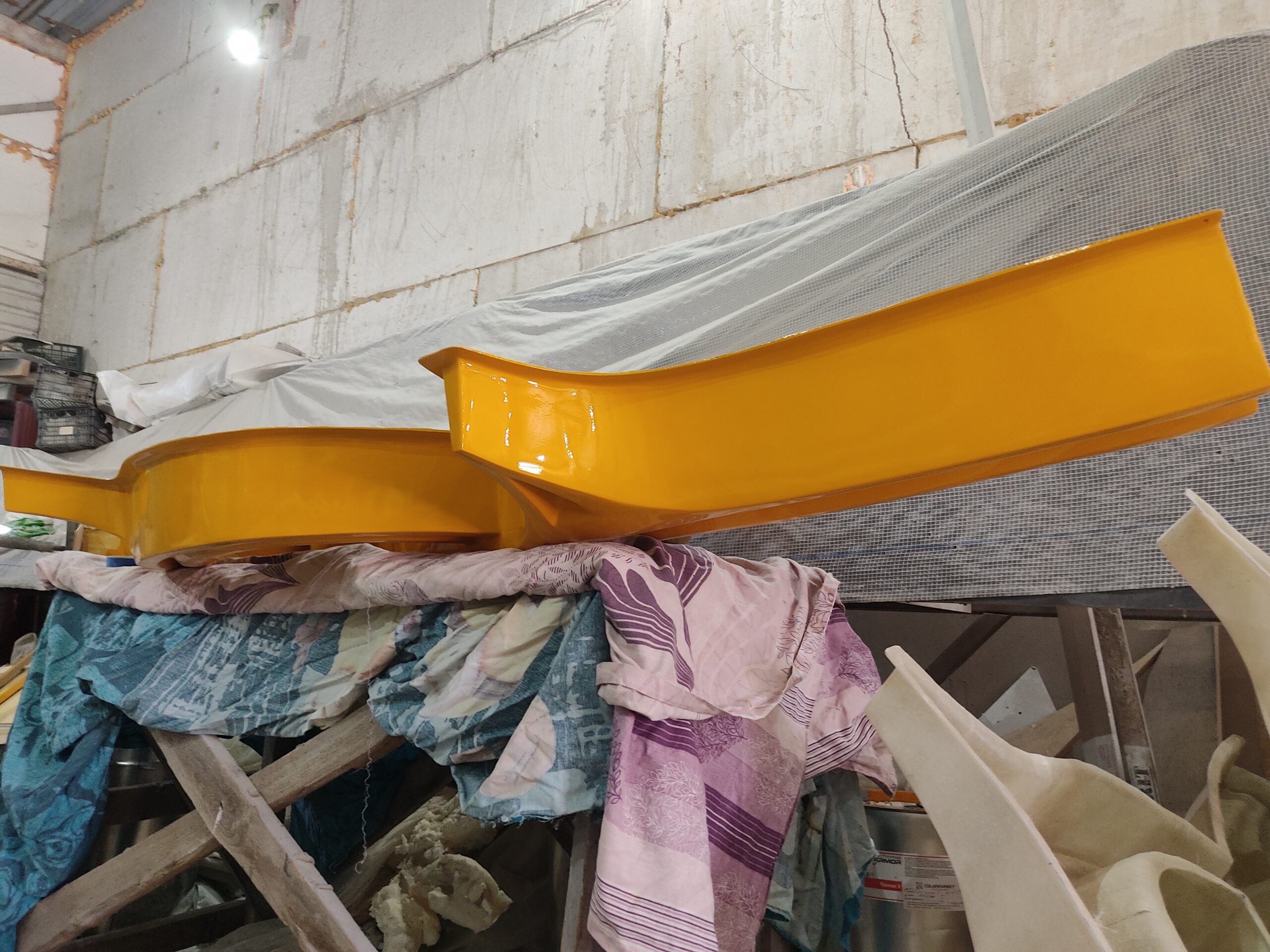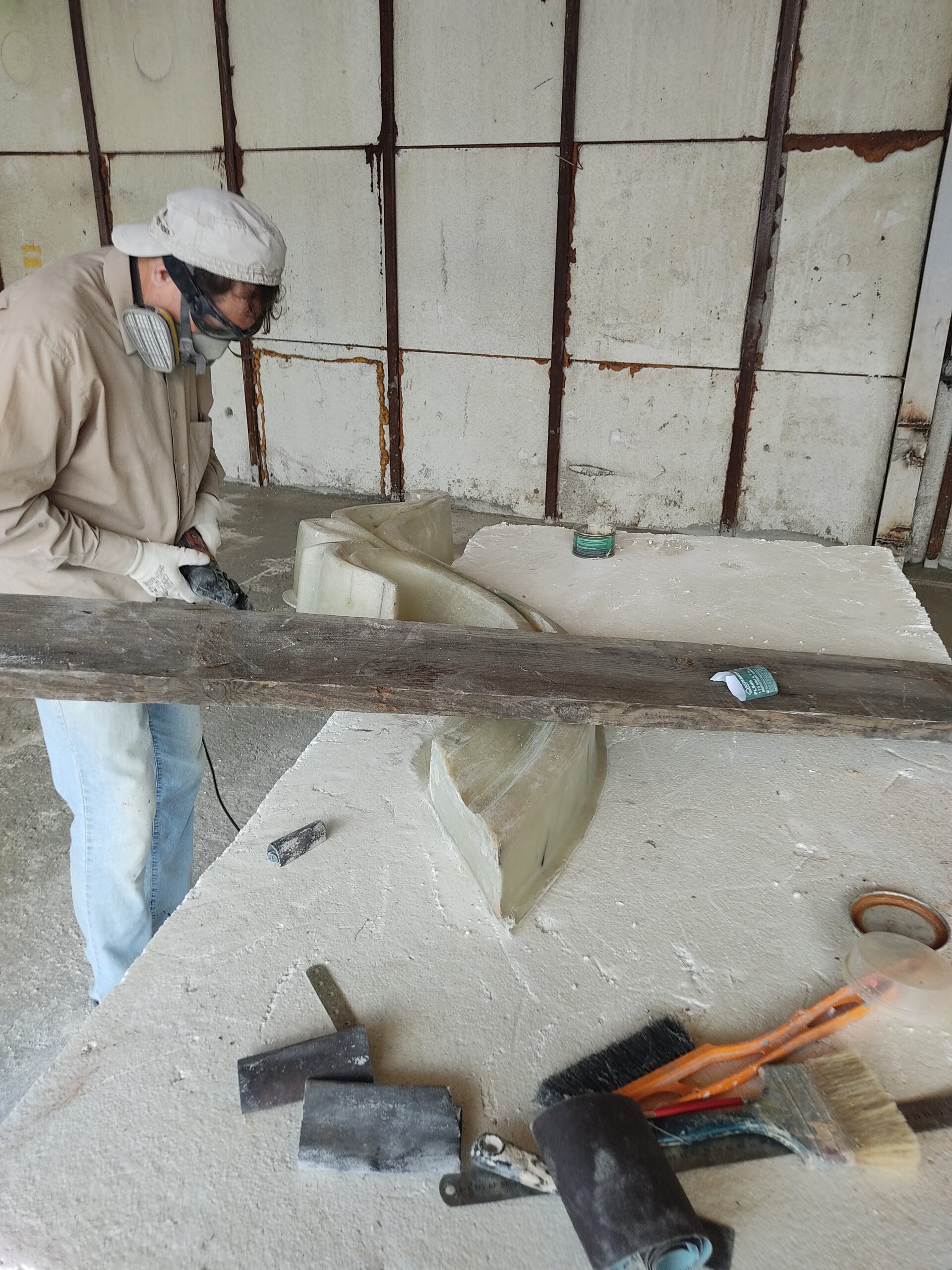 Нарощування товщини: Після гелькоуту накладаються шари скломату та смоли. Для великих форм створюється додатковий металевий або дерев’яний каркас, щоб матриця не деформувалася під час роботи.