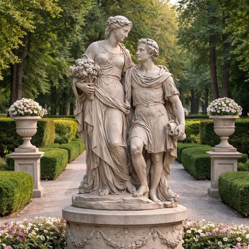– Мармур та архікамень (штучний камінь): Елегантні для класичних паркових скульптур. Архікамень — бюджетний варіант з високою стійкістю до вологи.