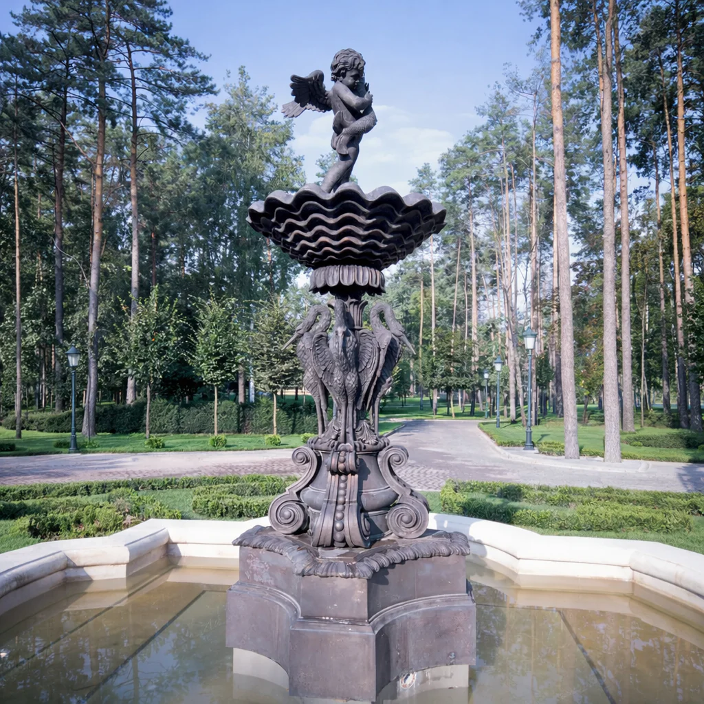 Метал: Бронза, мідь чи чавун — для лиття складних форм, часто з патинуванням для ефекту старовини.