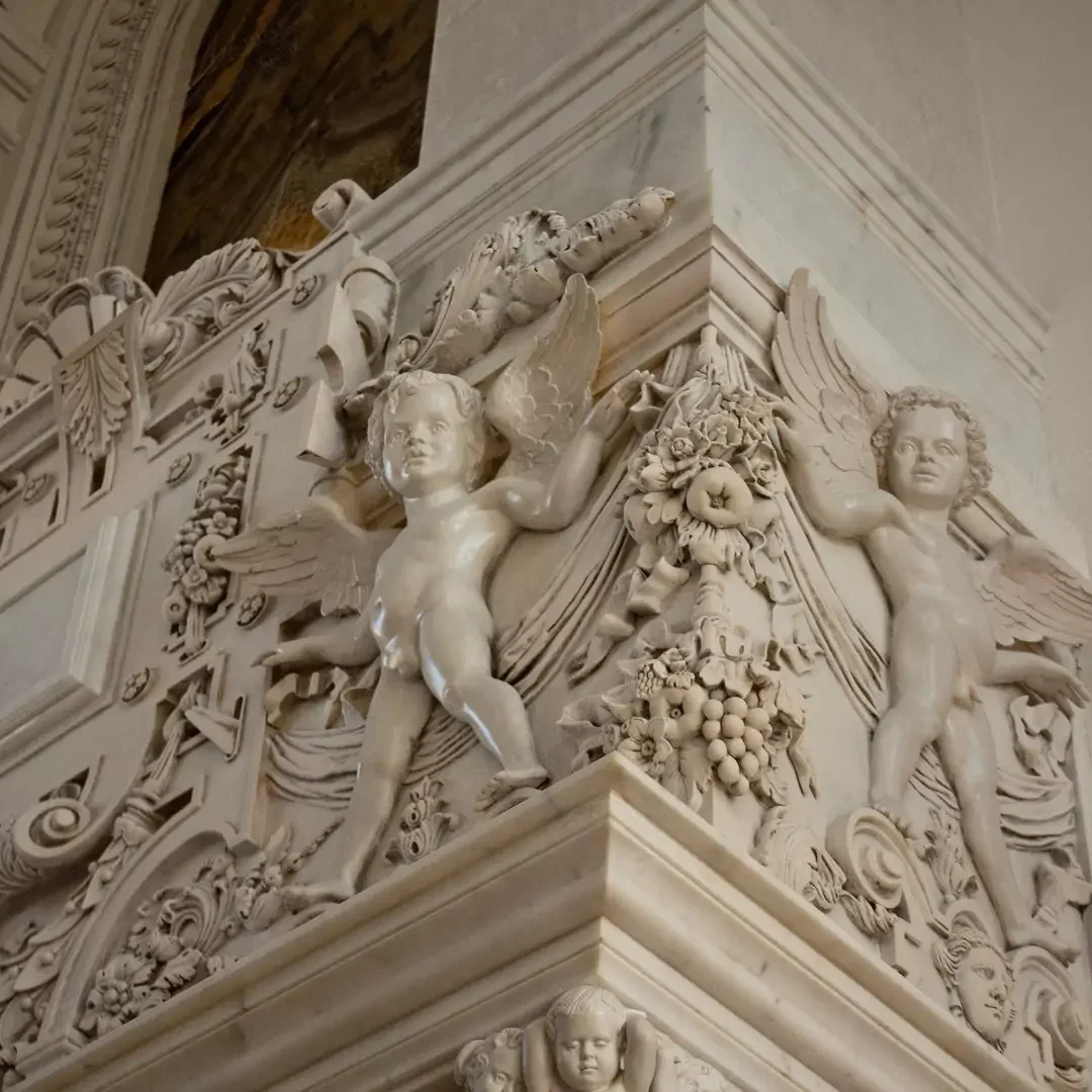 Статуї та фігури: Повнооб’ємні елементи, такі як атланти (чоловічі фігури, що підтримують конструкції) чи каріатиди (жіночі аналоги). Вони часто використовуються в колонах чи порталах.